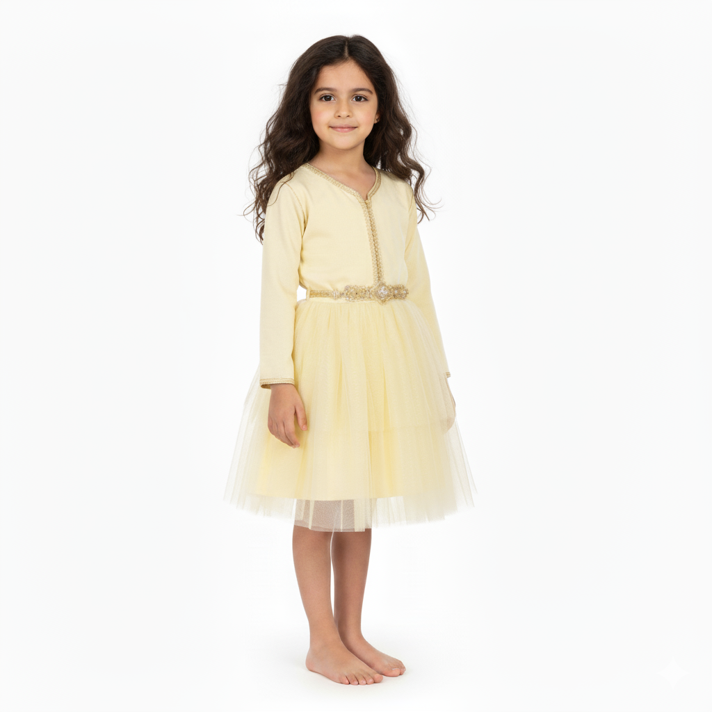 سواء كانت احتفالات احتفالية أو لحظات لا تنسى، يجسد هذا الفستان الأناقة الخالدة والأصالة الآسرة. امنح طفلك الفرصة للتألق بملابس تحكي قصة ثقافية غنية من خلال عناصرها المميزة. قطعة ستبقى خالدة في الأذهان لجمالها الذي لا مثيل له وتصميمها الاستثنائي.