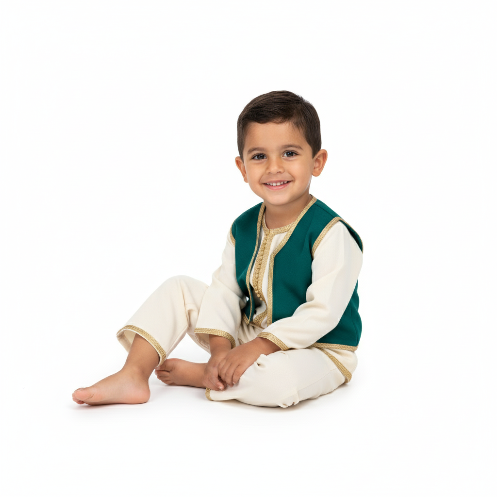 Offrez à votre enfant un look raffiné et traditionnel avec notre Jabador trois pièces.